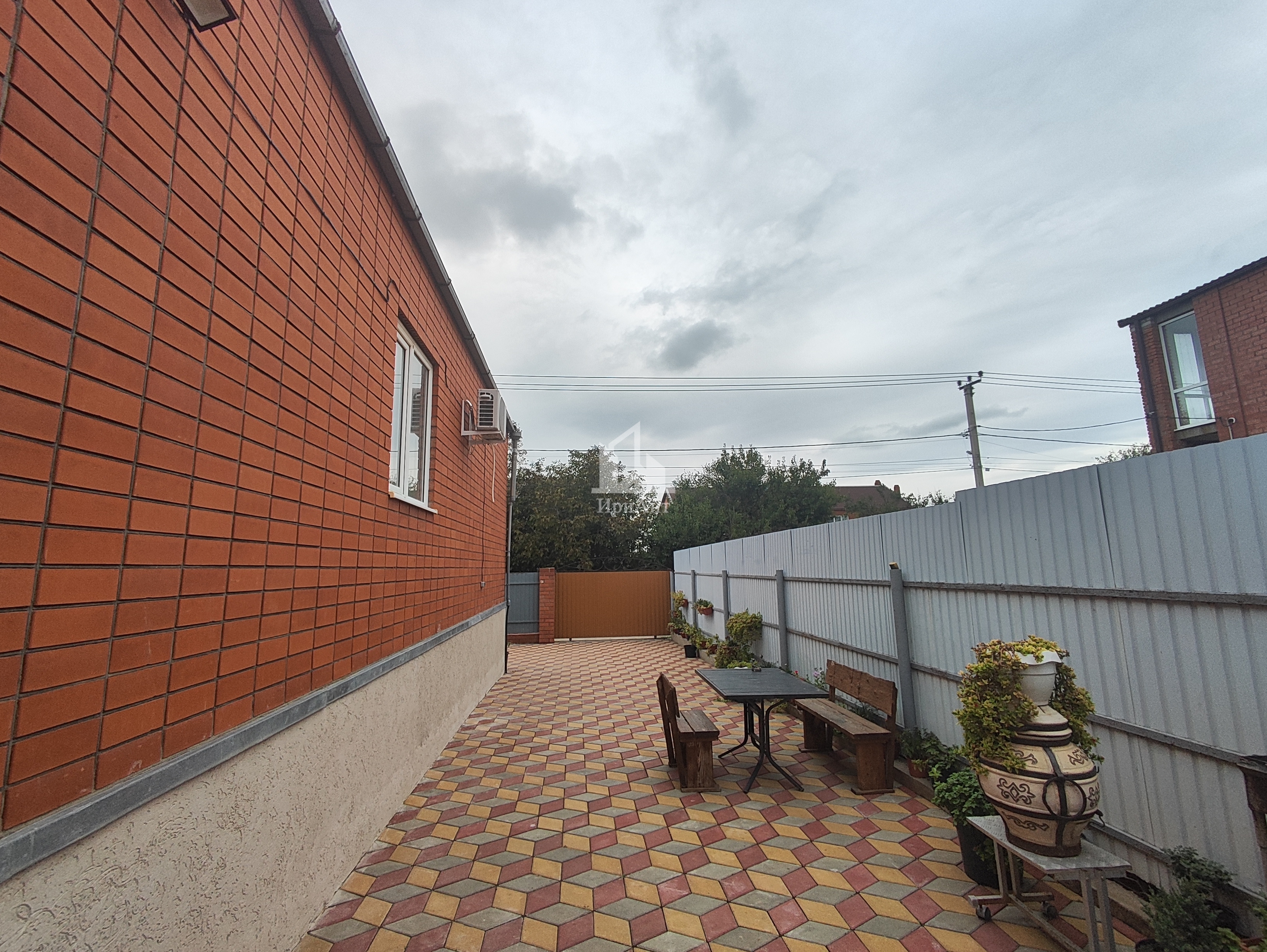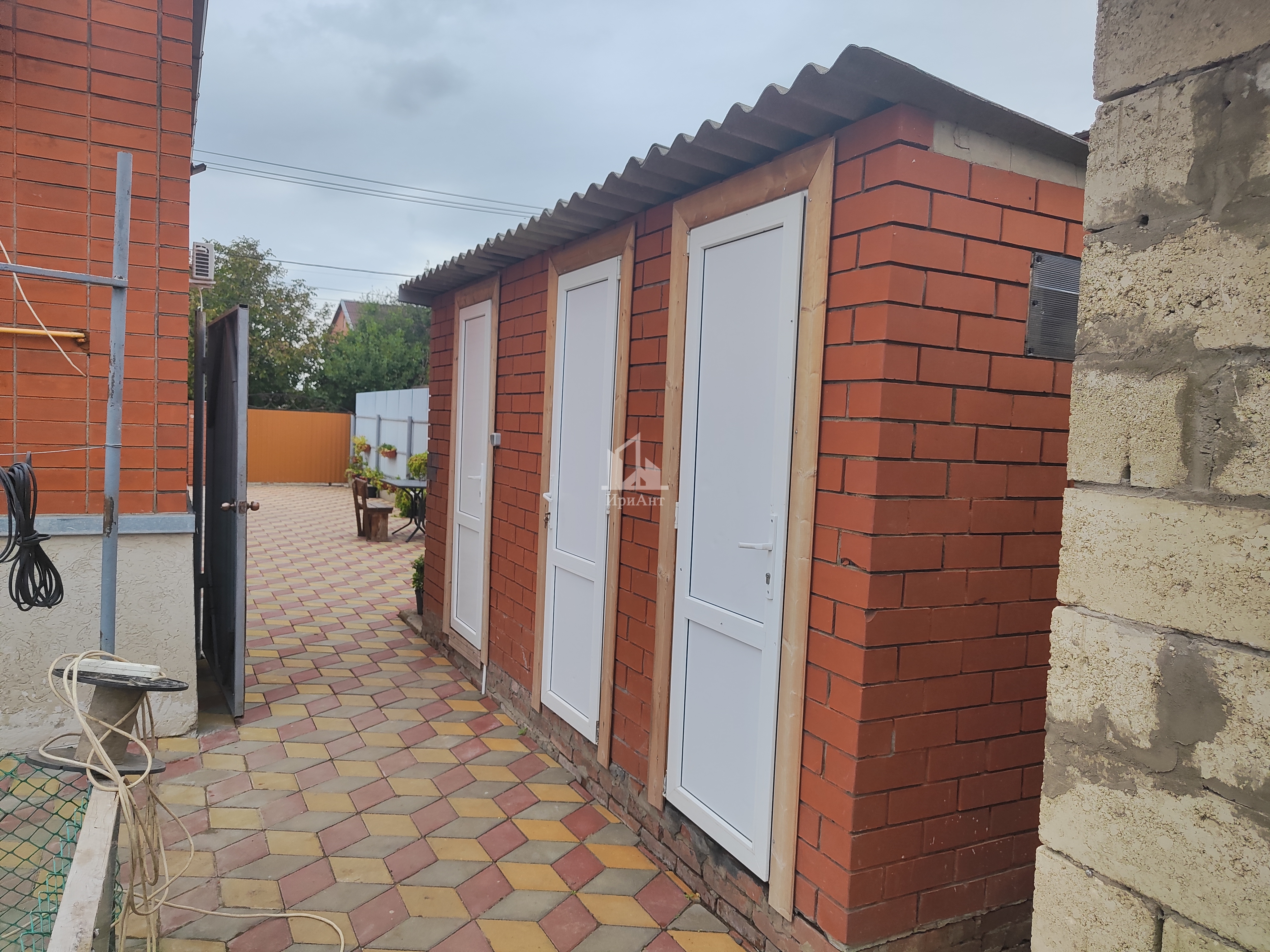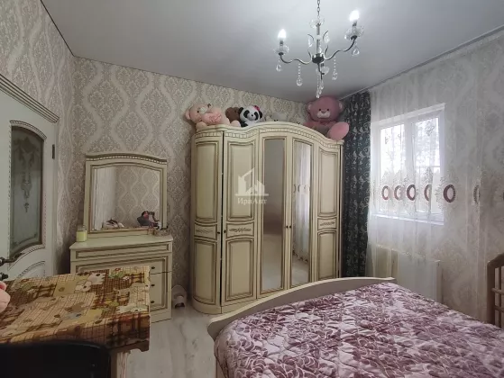 Дом расположен на участке площадью 5 соток также имеются дополнительные постройки: уличный душ, туалет, баня, кладовая и хоз. постройка для животных. Участок ухоженный во дворе выложена плитка и оборудованный капитальные ворота с элементами ковки.