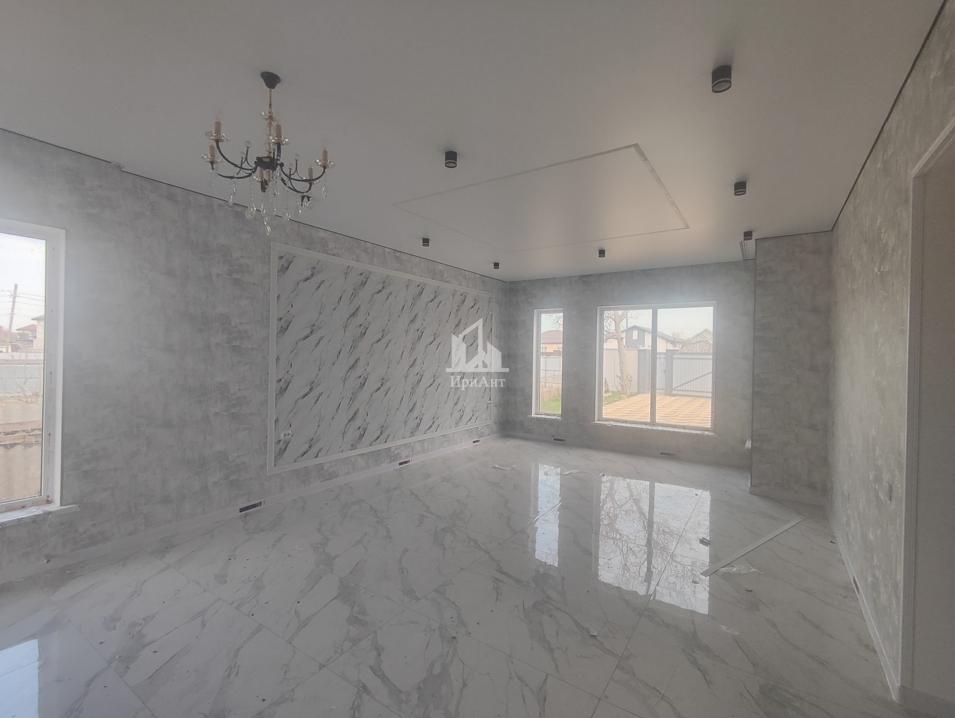Дом пpодаeтся в чистовой отделке: оборудованы натяжные потолки, плитка, ламинат.  Дом построен из качественных материалов, ленточный фундамент.