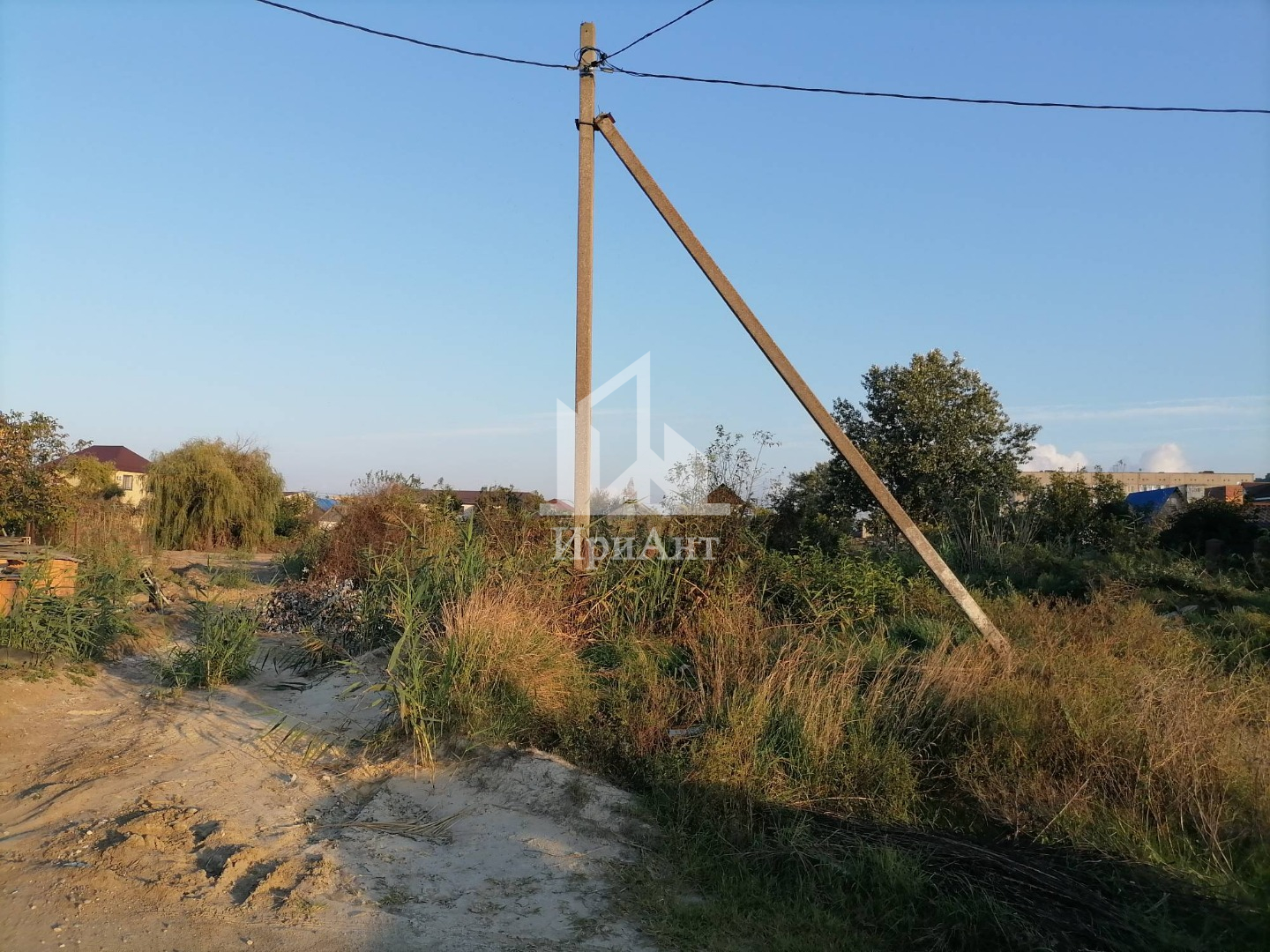 Коммуникации: электрический столб возле участка, водопровод, газ и канализация по границе.